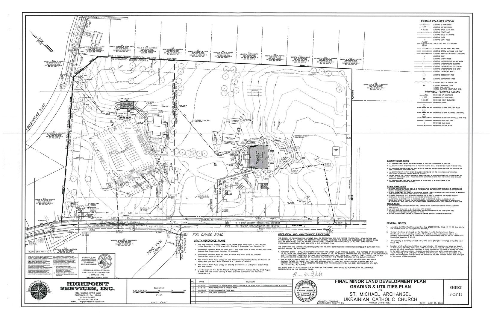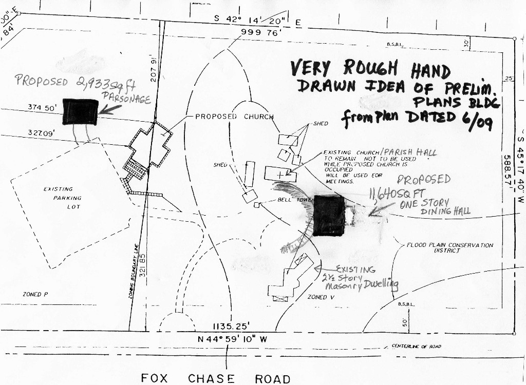 line on the 2009 Plan below. The left side with the parking lot and the log church