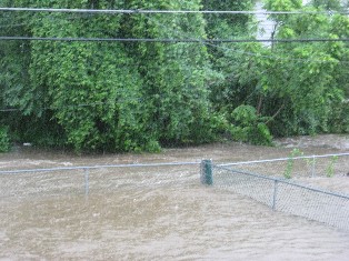 Above: The Sandy Run above in a moderate storm --- backyards  &  street flooding